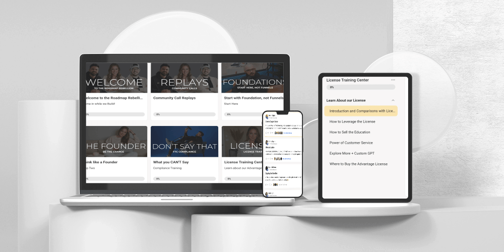 The Roadmap Rebellion, once purchased and completed, does provide the option to buy an Advantage License for a separate one-time fee of $99. This license is required to resell the course.
